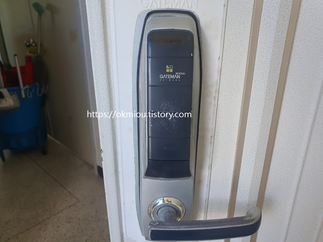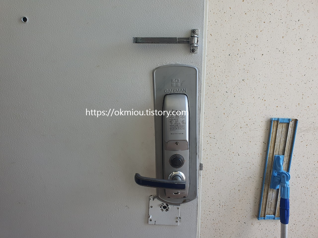 안녕하세요. 수원 도어락 설치 업체 위드홈 입닌다. 이번 설치 현장은 수원 율전동에 위치한 율전삼성2단지 아파트 방화문 푸쉬풀 도어락 교체 설치 현장입니다. 기존에 사용하시던 제품은 뚜껑이 있는 게이트맨 도어락 입니다. 오래 사용하신 흔적이 보이네요.