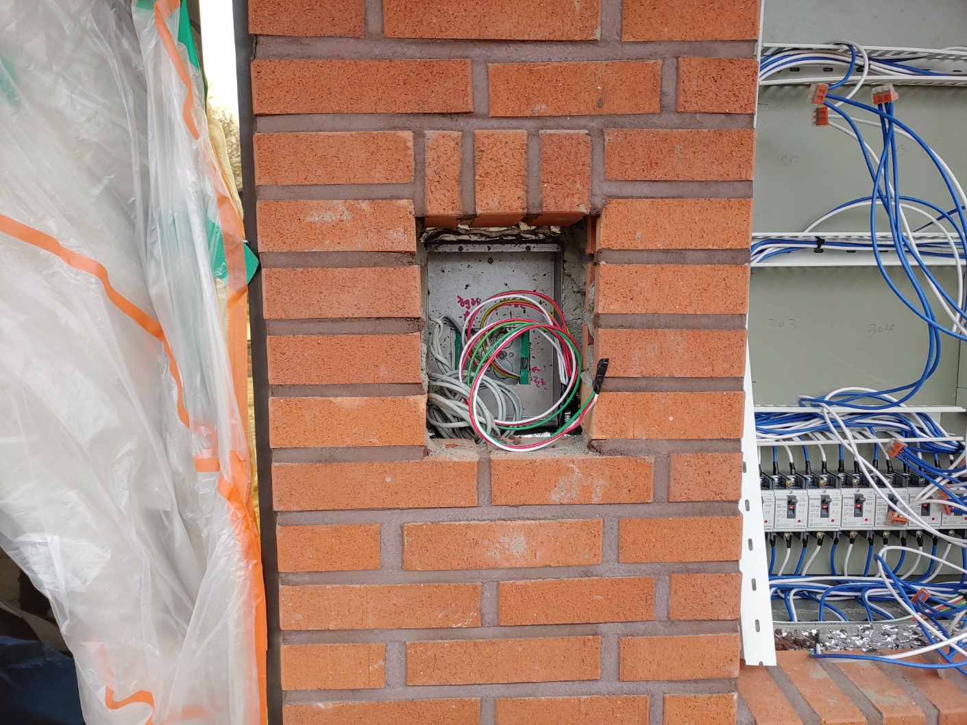우선 현관문 앞 도어폰 선을 찾은 뒤 세대간 배선 작업을 하였습니다. 배선을 잘못 연결하면 물려있는 라인 전부 안 되는 경우가 있습니다.